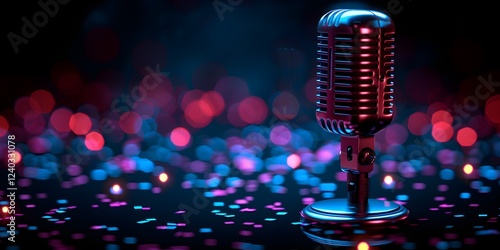 closeup microphone with bokeh light background