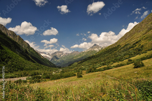 Closeup mountains scenes in national park Dombai, Caucasus, Russia