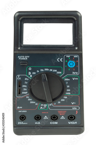 Close-up multimeter on a white background. White screen place for text.
