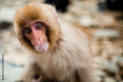 Close-up of a Baby Macaque Peering into Camera