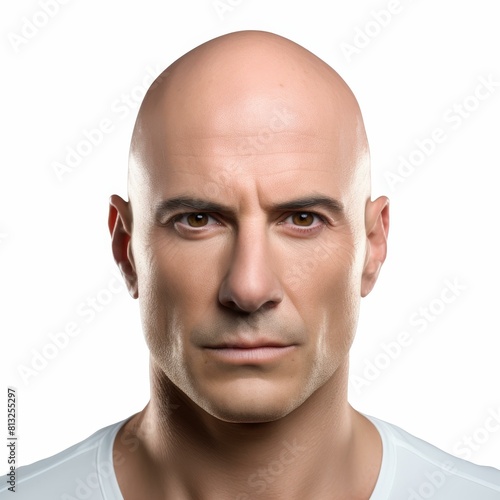 Closeup of a bald mans head isolated on a white background, Ai Generated