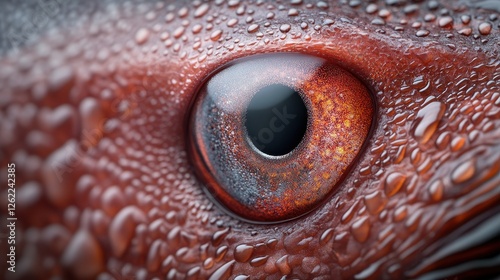 Close-up of a beautiful animal eye with intricate details and water droplets.