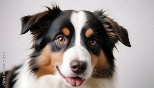 Close-up of a beautiful Australian Shepherd dog with a happy expression.