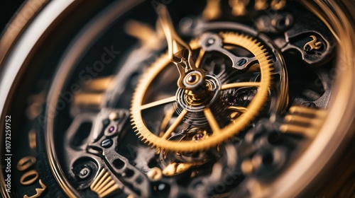Close-up of a beautifully detailed watch face with intricate mechanics, showing time in a luxurious design
