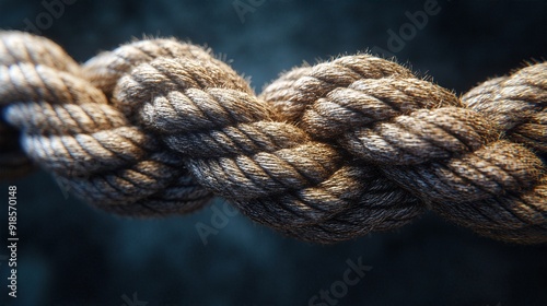 Close-up of a beautifully twisted rope showcasing its texture and strength against a soft, blurred background.