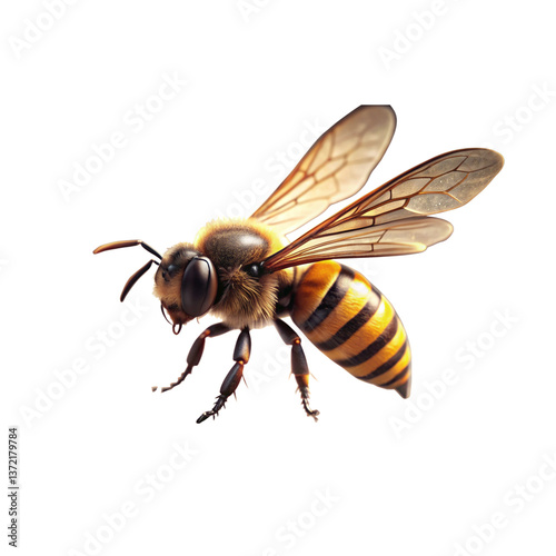 Close-up of a bee flying on a white background