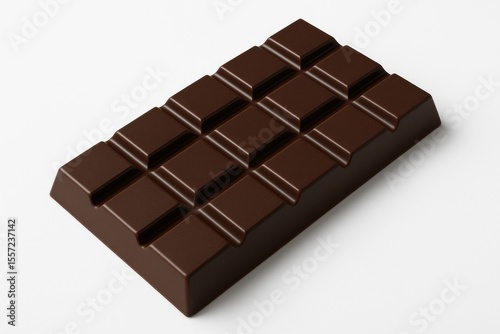 Close-up of a bitter dark chocolate piece on a white backdrop