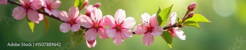 Close-up of a blossoming branch, delicate pink flowers and vibrant green leaves symbolizing renewal and healing, perfect for wellness and spring themes , pink, blossom
