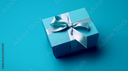 Close-up of a Blue Gift Box with Ribbon Bow