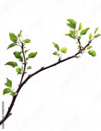 Closeup of a Branch with New Green Leaves on White Background