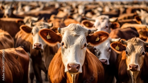 Close-Up of a Brown and White Cow in a Herd