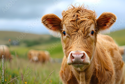 Close-up of a brown cow looking at the camera on a farm