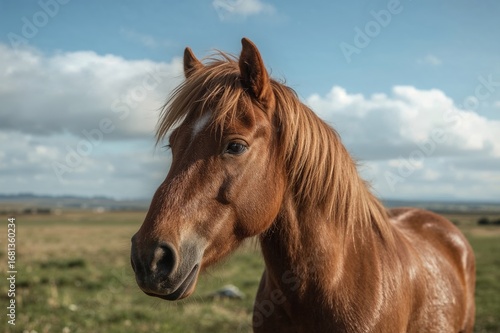 Close-up of a brown horse with a thick mane
