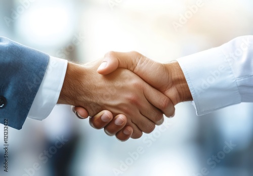 Close-Up of a Business Handshake Symbolizing Partnership and Cooperation Between Two Professionals in a Modern Office Environment