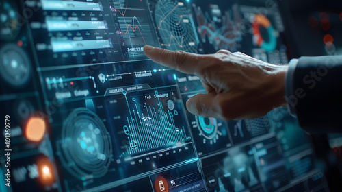 Close-up of a businessman's hand pointing at a 3D chart made of concrete and glass textures, representing sturdy growth in a business environment.