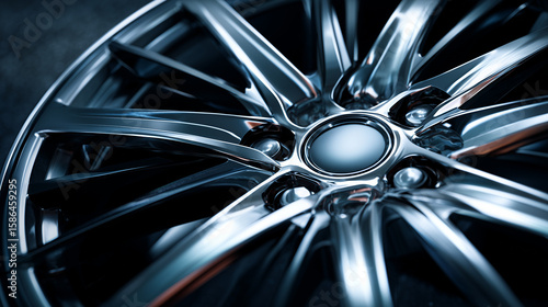Close-up of a car wheel rim showcasing sleek design and metallic finish. Ideal for automotive, vehicle customization, and performance themes.