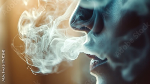 Closeup of a classic cigar releasing spiraling smoke under soft light focusing on detailed texture with a moody blurred backdrop