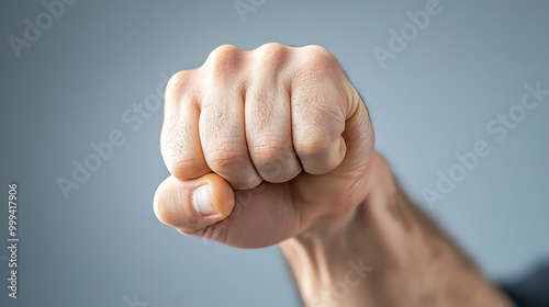 Close-up of a clenched fist on a blurred background symbolizing determination, strength, and empowerment in personal or professional contexts.