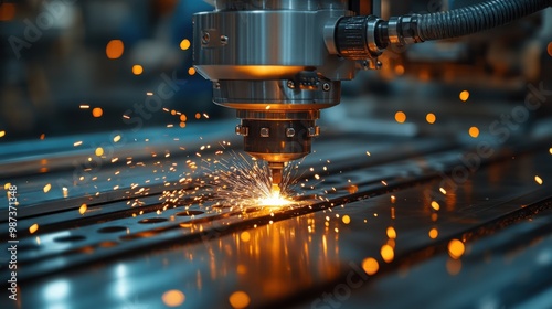 Close-up of a CNC Machine Cutting Metal with Sparks