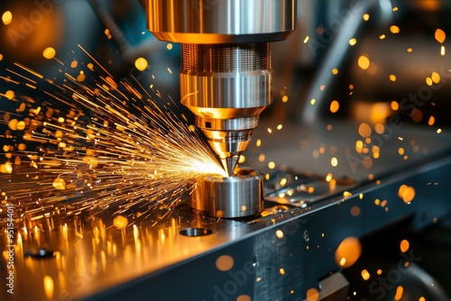 Close-up of a CNC Machine Cutting Metal with Sparks Flying