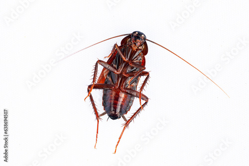 close-up of a cockroach isolated on a white background