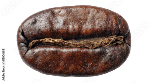 Close-up of a coffee bean on a white isolated background.