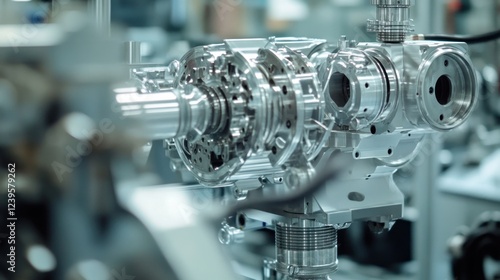 Close-up of a Complex Metal Machine Part in a Factory Setting