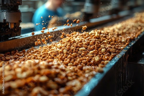 Close-up of a Conveyor Belt Filled with Roasted Nuts