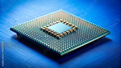 Closeup of a CPU with Gold Pins on a Blue Background, Computer , Hardware, Technology , Electronics