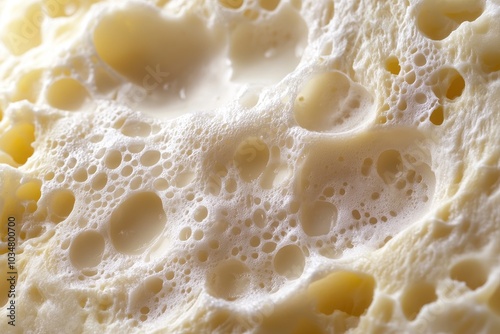 Close-up of a Creamy, Foamy Surface with Numerous Irregular Holes