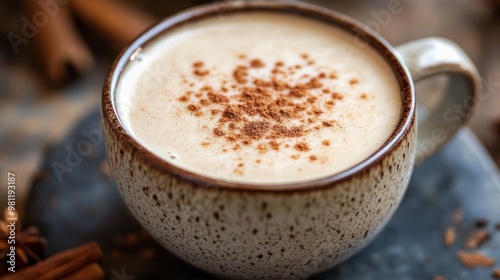 Close-up of a Cup of Creamy Cinnamon Latte
