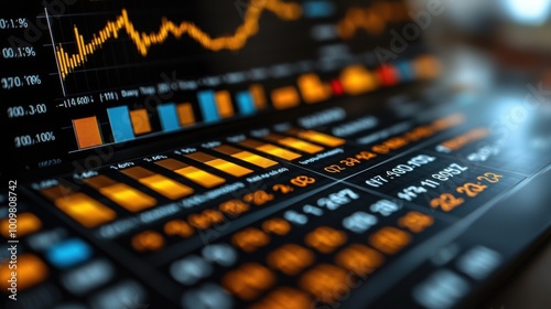 Close-up of a digital trading dashboard during market analysis with fluctuating graphs and price indicators at night