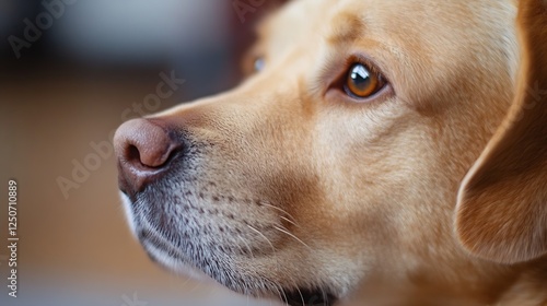 Closeup of a dog showcasing its expressive eyes and soft fur in a cozy indoor setting : Generative AI