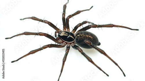 Close-up of a False Button Spider (Steatoda sp.), also known as a black cobweb spider, brown house spider, or cupboard spider, displaying its distinct features.