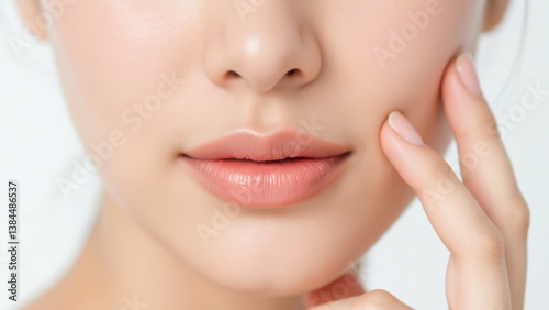 Close-Up of a Female Model's Face with Soft Skin and Natural Makeup Enhancing Lips and Cheeks
