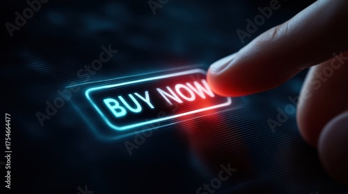Close-Up of a Finger Pressing a Glowing Buy Now Button on a Digital Screen Emphasizing Online Shopping and E-Commerce Trends