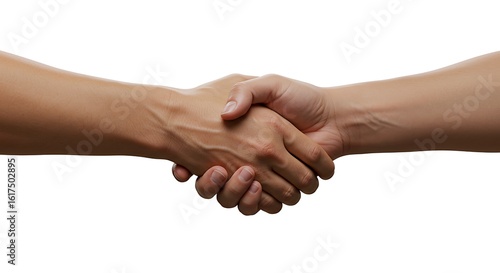 Close-up of a firm handshake symbolizing a business agreement and partnership on a white background.