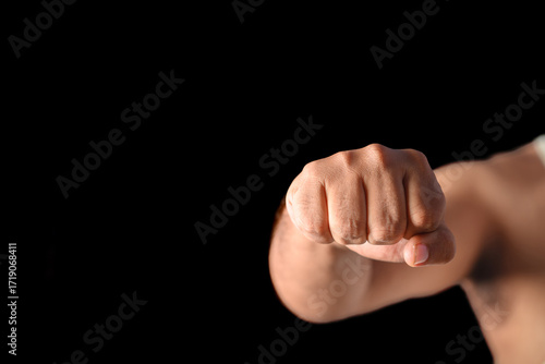 Close-Up of a Fist in a Black Background Symbolizing Strength and Power