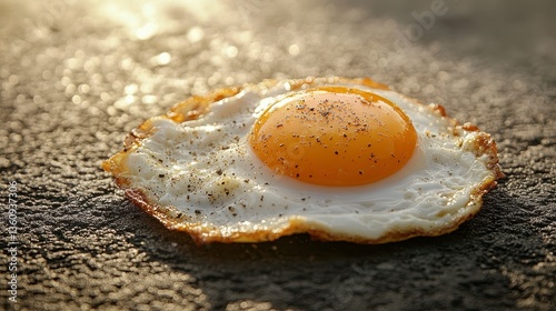 Closeup of a Fried Egg with Golden Yolk and Black Pepper on a Dark Background