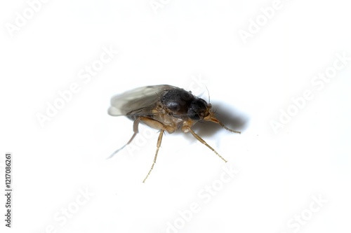 Close-up of a Fruit Fly, Drosophila melanogaster on White Background, isolated