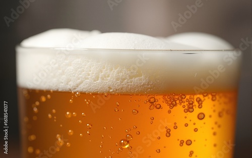 Closeup of a glass of beer with bubbles rising to the surface. High quality
