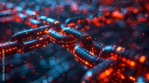Close-up of a glowing digital blockchain link, representing cryptocurrency and secure transactions.