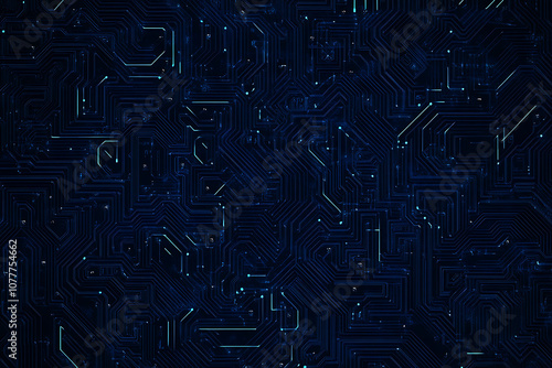 Close-up of a glowing neon circuit board pattern, showcasing intricate lines and electronic pathways in a vibrant blue hue