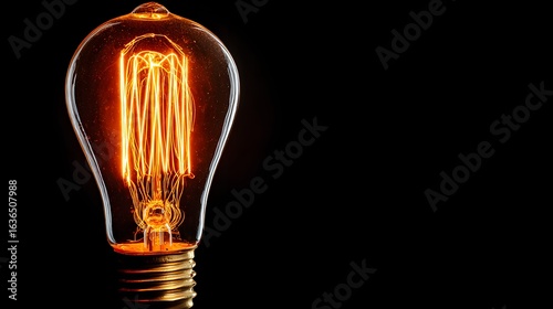 Close-up of a glowing vintage filament lightbulb.