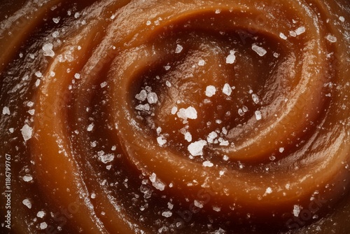 Close-up of a golden cinnamon roll with sugar crystals on top