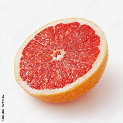 Close-up of a grapefruit half, vibrant red segments, pale orange flesh