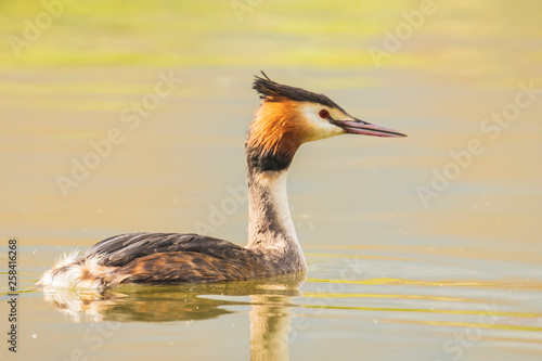 Closeup of a Great crested grebe Podiceps cristatus waterfowl
