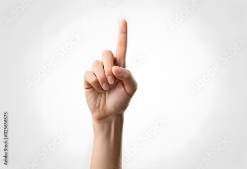 Close-up of a hand gesturing number one, isolated on white background. Simple, clean image perfect for various uses.