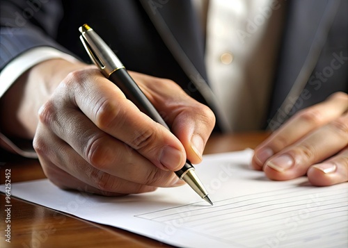 Close-Up Of A Hand Holding A Pen, Signing A Document With An Elegant And Distinctive Signature Design.