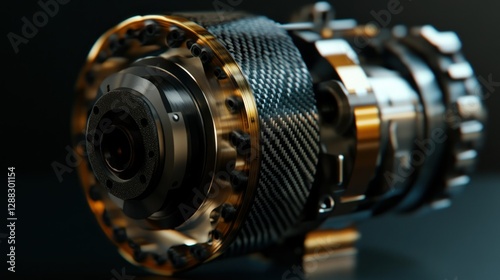 Close-up of a high-tech engine component showcasing intricate design and materials
